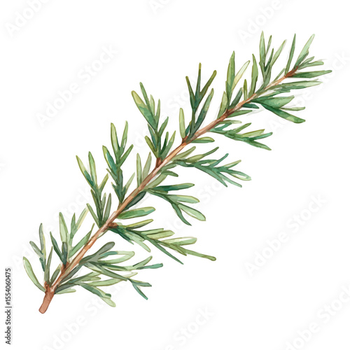 A Yew Needle, watercolor painting vector, isolated on a white background.