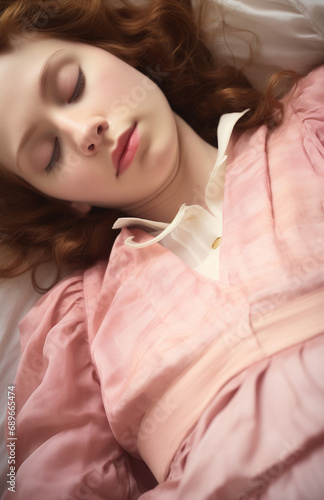 a young beautiful girl lying on the bed, head with wavy hair closeup, romance novel cover