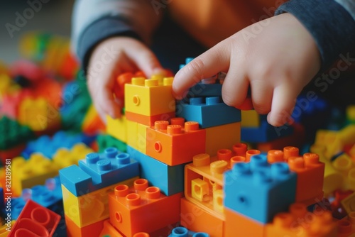 A young child, full of concentration and wonder, is busily building with colorful bricks.