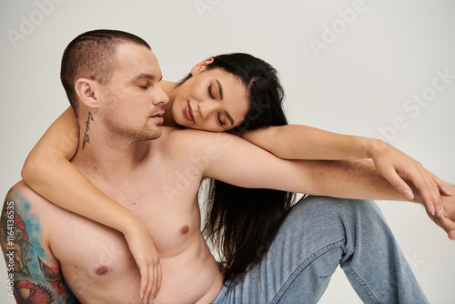 A young couple expresses deep affection in a cozy studio, capturing a moment of romance.