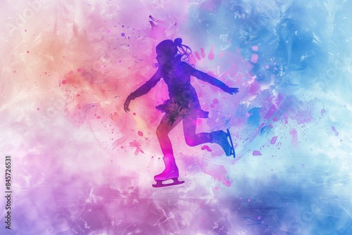 A young girl is shown skateboarding on a vibrant and colorful background, with a focus on her skills and movement