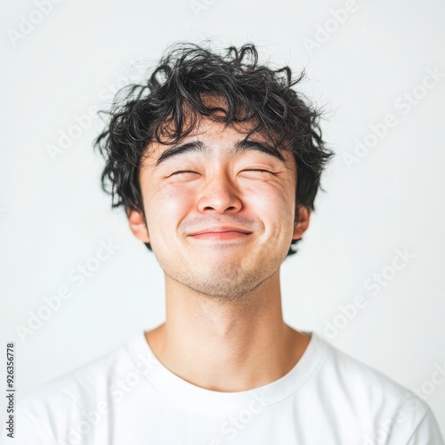 A young man with curly hair smiles warmly at the camera. He is wearing a plain white t-shirt.