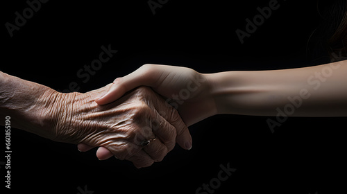 A young person holding an older person's hand