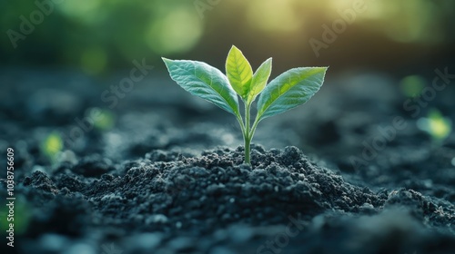 A young plant sprouting from rich soil, symbolizing growth and renewal in nature.