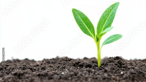 A young sprouting plant emerging from the ground, depicted against a white background.