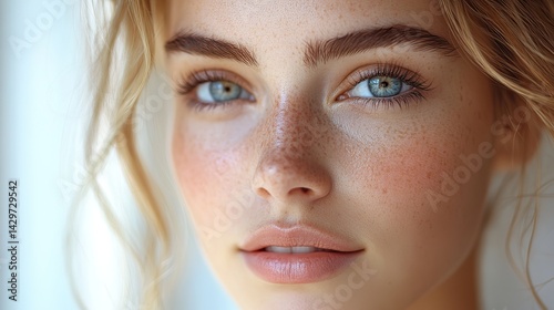 A young woman gently touches her nose, contemplating rhinoplasty for enhanced beauty and breathing against a warm background.