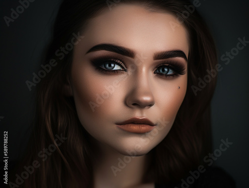 A Young Woman with a Dark Smoky Eye Makeup | Generative AI