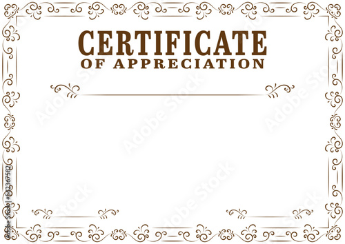 A4 size vintage style certificate vector design with hand drawn flourish swirl frame. Vintage diploma border frame template illustration to use in invitation, card, calligraphy, retro design projects