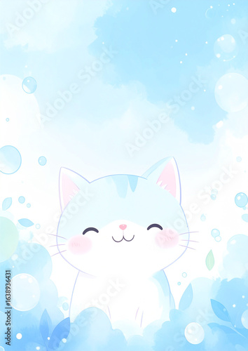 A4-sized paper templates with adorable cartoon cat designs. Each page features a different layout with soft pastel colors, cute illustrations of cats, and playful borders, perfect for children's