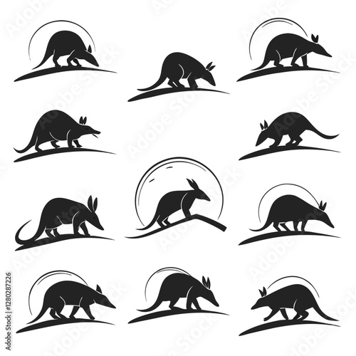 Aardvark Silhouette Vector Set: Wildlife Animal Logo Designs, African Mammal Graphics, Flat Illustration, Nature Icon Collection