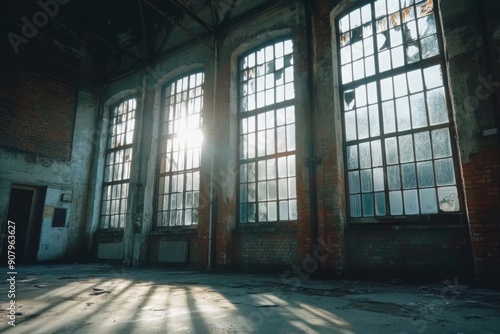 Abandoned factory interior urban exploration, with copy space