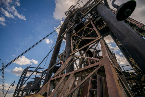 Abandoned Heavy Industrial Ruins with Large Blast Furnace in Steelworks