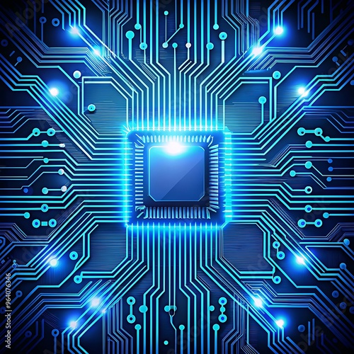 Abastract AI circuit board background. Technology connected blue lines with electronics elements on tech bg. Computer motherboard with a chip, processor, Ai Generated