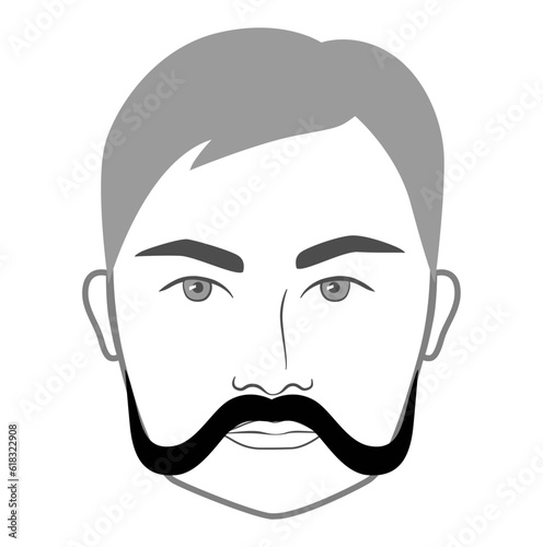 Abhinandan moustache Beard style men face illustration Facial hair. Vector grey black portrait male Fashion template flat barber collection set. Stylish hairstyle isolated outline on white background.