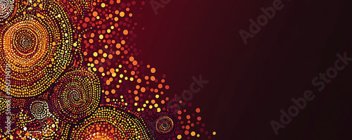 Aboriginal Dot Art Background - Red, Orange, Yellow & Brown on Dark Burgundy - Perfect for Custom Text - Vector Illustration, High Resolution, Flat Design
