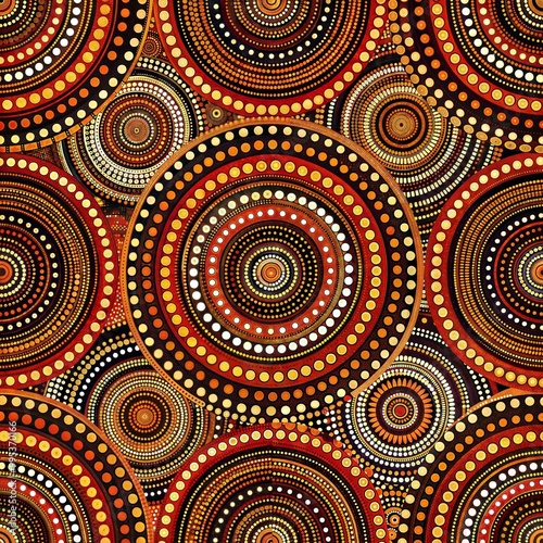 Aboriginal-Inspired Circular Dot Art with Radiating Designs in Warm Earthy Hues