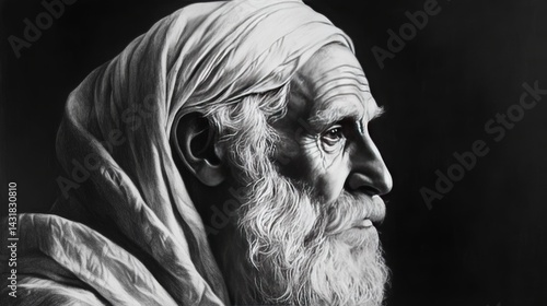 Abraham, progenitor of the people of Israel, charcoal pencil drawing, religion, god, judaism, bible, jewish, biblical, 16:9