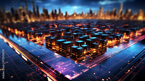 Abstract Futuristic Technology Background with Circuit Board Patterns. Modern Digital Innovation, communication, Data Transfer Concepts for High-Tech Designs and Modern Electronics.