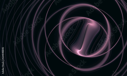 Abstract 3d artwork illustrating screwing purple spiral with loops in deep dark space. Conceptual idea of bonds, connections and sound of infinity. Great as cover print, background, blank for designs.