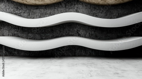 Abstract 3D Background Curvy White Shelves Concrete Wall Modern Design