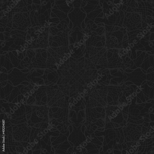 Abstract 3d background, pencil drawings on a dark background, reflection of repeating elements, stars, circles, rhombuses