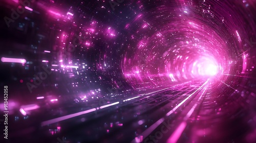 Abstract 3D Background: Pink Neon Light Tunnel With Glowing Particles