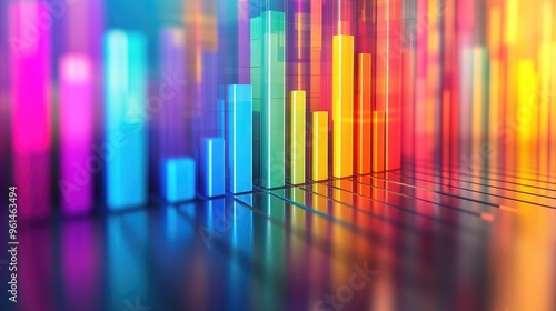 Abstract 3D bar graph with gradient colors, emerging from a reflective surface. Dynamic visualization of data trends in modern business
