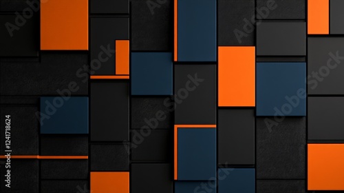 Abstract 3D Cubes: Geometric pattern of dark gray and vibrant orange cubes creating a dynamic and modern visual. Perfect for backgrounds, technology, or abstract design projects.