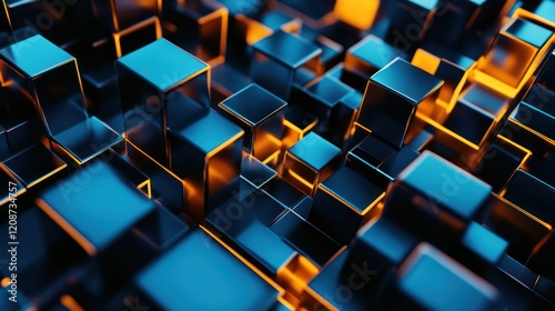 Abstract 3D Cubes with Orange and Blue Lighting