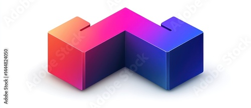 Abstract 3D design. Interlocking cubes in gradient pink, purple, and blue hues. Modern, geometric shape