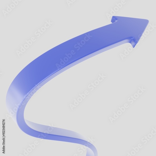 Abstract 3D figure of a blue curved arrow pointing upwards on a white background. Symbolizes growth, progress, or upward direction. Ideal for use in business presentations, infographics, and design