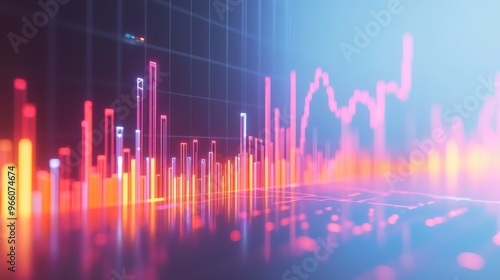 Abstract 3D financial chart with candlestick patterns and trend lines on a white