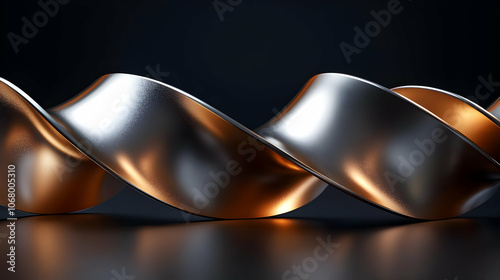 Abstract 3D Gold and Silver Twisted Ribbon Background