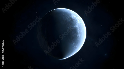 Abstract 3D Illustration Of A Blue Planet In Dark Space With Glowing