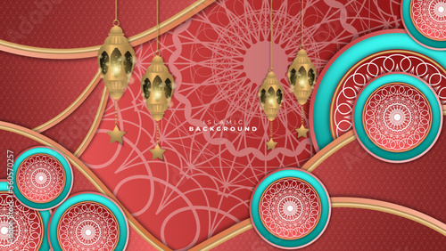 Abstract 3d islamic ramadan background with moon, lantern, mandala pattern and muslim decoration. Template for greeting card, banner, poster, and social media template. Vector illustration