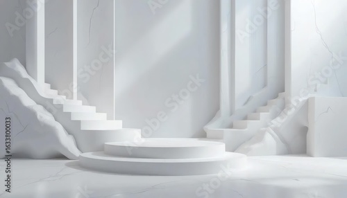 Abstract 3D Render of a Stage with Stairs in a White Interior