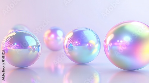 abstract 3d render of iridescent orbs levitating in a white void showcasing a range of vibrant colors and reflective surfaces in a minimalist composition