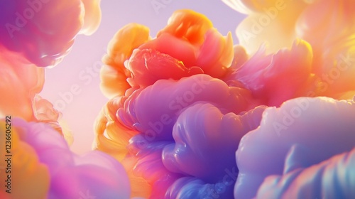 Abstract 3D rendering of a flower-like shape with gradient colors and soft lighting