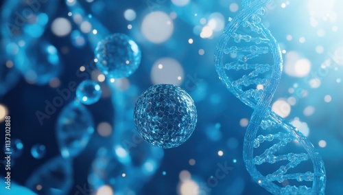 Abstract 3D Rendering of DNA Double Helix and Spheres