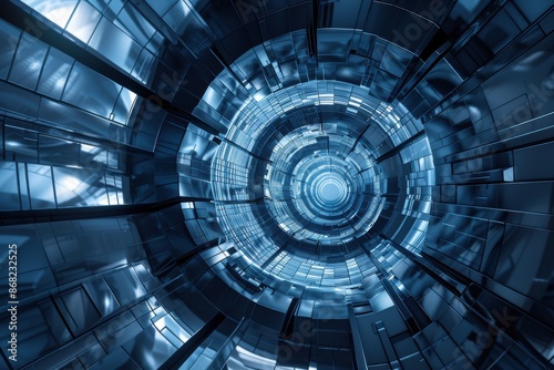 Abstract 3D rendering of futuristic tunnel with glowing blue lights. Perfect background for technology, science fiction, or cyberpunk themes.