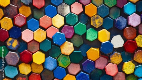 Abstract 3d rendering of hexagons random level color background.