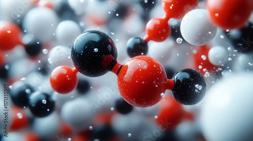 Abstract 3D rendering of molecules, atoms, and bonds in a complex structure.