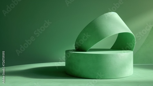 Abstract 3d shape cylinder pedestal podium isolated green background. AI generated image