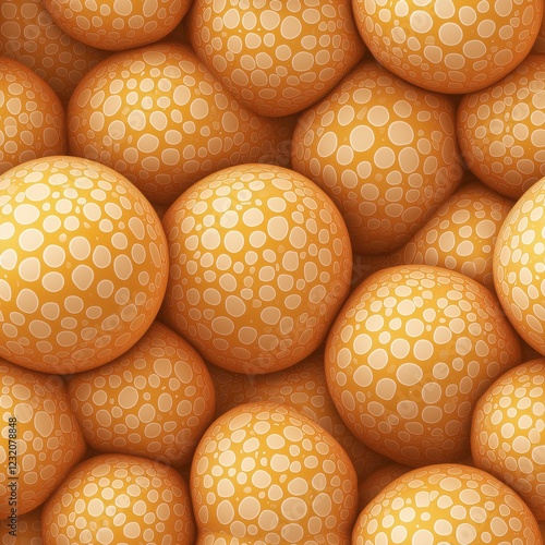 Abstract 3D Spheres with Bubble Texture in Warm Orange and Yellow Hues, Modern Organic Pattern, Dynamic Digital Art Design for Wallpaper, Fabric, Packaging, and Visual Effects