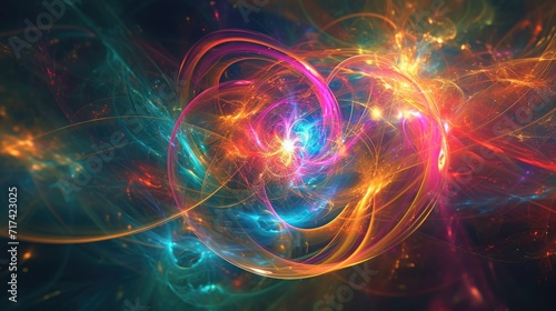 Abstract 3D symphony of subatomic particles background