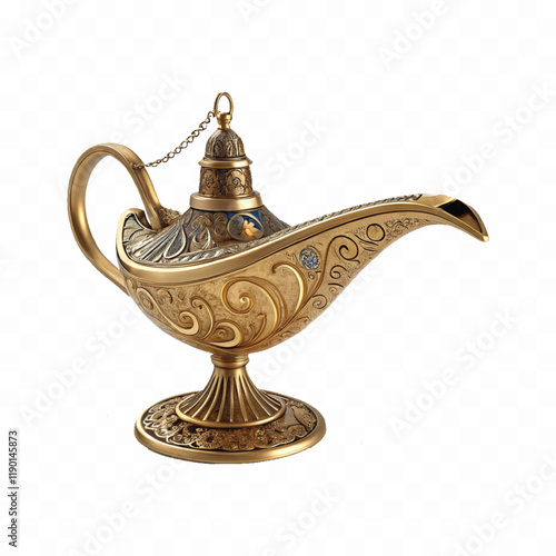 abstract 3d Vintage lamp of Aladdin in old style Isolated on a white background