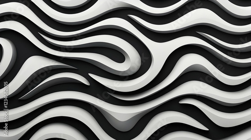 Abstract 3D wavy black and white pattern, modern design, textured background, for website or print