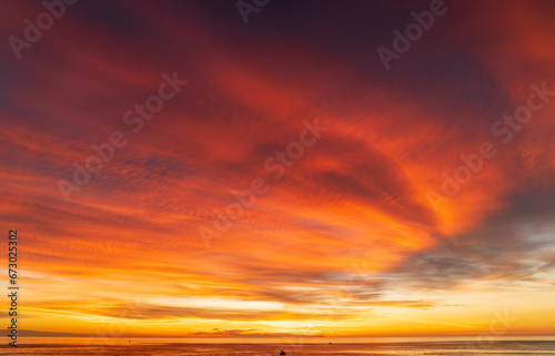 Abstract amazing Scene of stuning Colorful sunset or sunrise with clouds background in nature and travel concept, wide angle shot Panorama shot,Copy space.