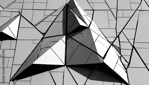 Abstract architectural facade of triangular shapes and geometric patterns