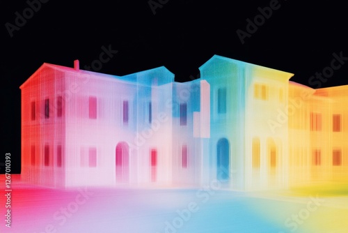 Abstract architectural illustration of colorful buildings with a gradient effect, highlighting contemporary design and vibrant hues in a captivating visual display